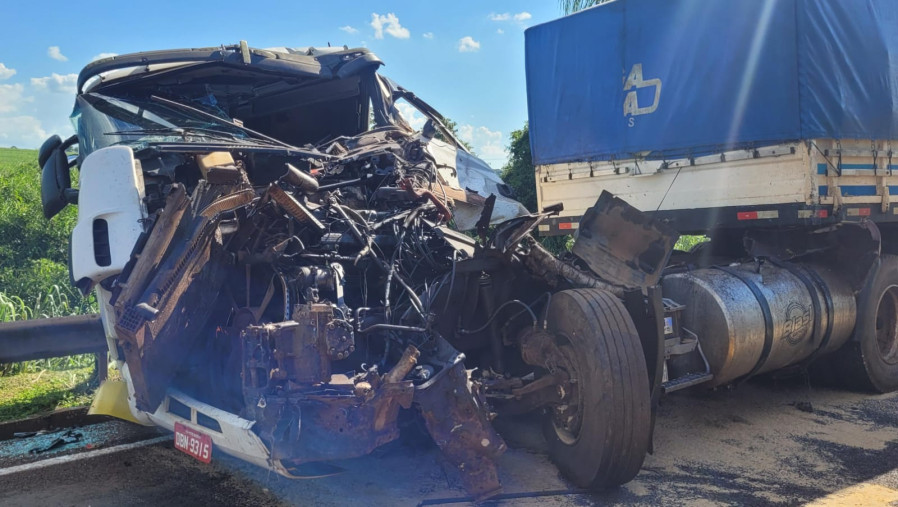 Carreta abalroada pelo ônibus. Foto: José Luiz Bressa