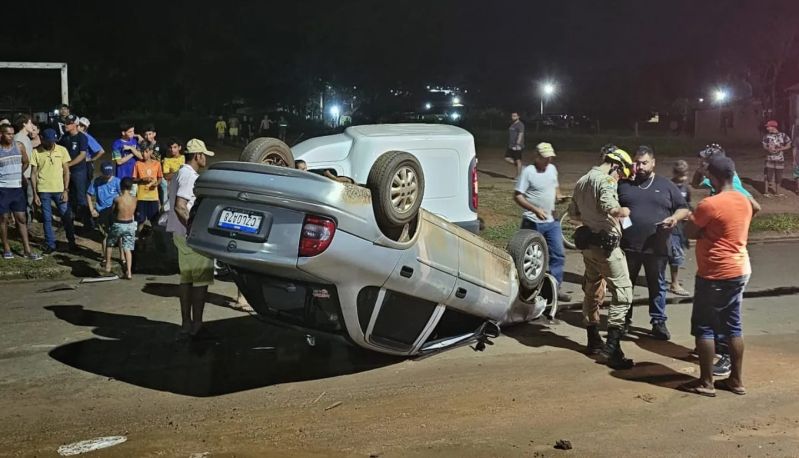 Um acidente entre dois carros terminou com uma mulher grávida, de 27 anos, ferida na noite deste domingo (17), na região do bairro São Sebastião, em Ribas do Rio Pardo, distante a 97 quilômetros da capital. O carro Chevrolet Corsa onde a vítima estava capotou.