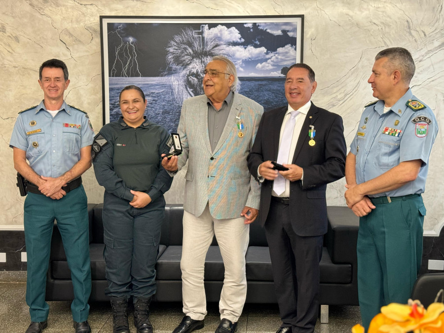 O ato de entrega da comenda foi realizado no Comando da Polícia Militar, teve a participação da vice-comandante da PM, coronel Neidy Nunes Centurião e do presidente do Tribunal de Contas, conselheiro Jerson Domingos , que também recebeu a medalha .
