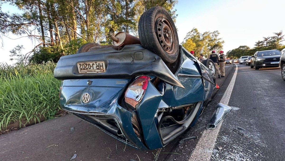 Marido e mulher estavam em VW Gol. De acordo com informações obtidas no local, o veículo seguia o curso normal quando foi tocado por um Yunday iX 35, que tentava ultrapassar. O motorista do Gol perdeu a direção, bateu na canaleta da pista e capotou várias vezes, ficando com as quatro rodas para cima.
