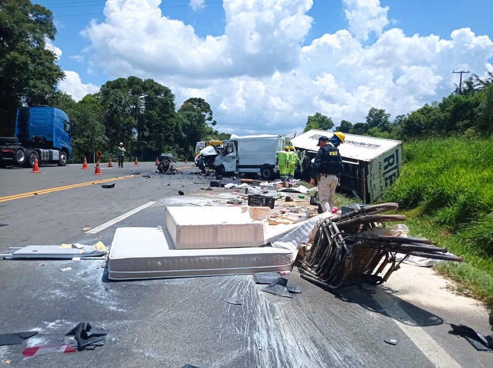Um grave acidente entre uma van e um caminhão ocorreu na manhã desta quarta-feira (26) entre Fernandes Pinheiro e Irati, na BR-277, região central do Paraná. O impacto da batida foi tão forte que o motor da van foi arrancado do veículo. A Polícia Rodoviária Federal (PRF) confirmou que a colisão aconteceu em uma curva, em um trecho da rodovia onde ocorrem obras e o trânsito está no sistema Pare e Siga.