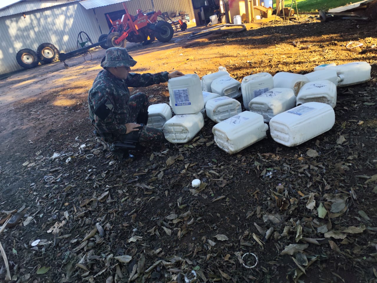 A Polícia Militar Ambiental de Naviraí (PMA), durante patrulhamento na zona rural do município de Juti, autuou um produtor rural por descarte irregular e queima de embalagens vazias de agrotóxicos, em desacordo com a legislação ambiental vigente e as recomendações dos fabricantes.