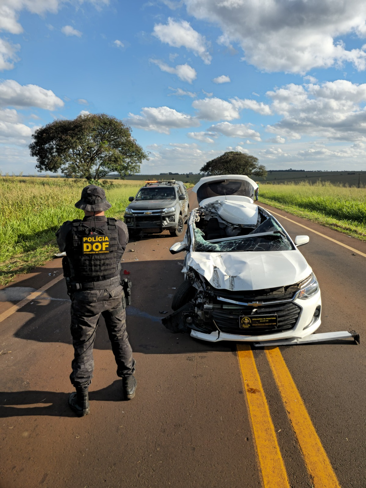 A ação ocorreu durante um bloqueio policial, quando os agentes tentaram abordar um GM Onix branco que trafegava em alta velocidade. O motorista desobedeceu à ordem de parada e iniciou uma fuga arriscada, que terminou após colidir com um caminhão ao tentar uma ultrapassagem.