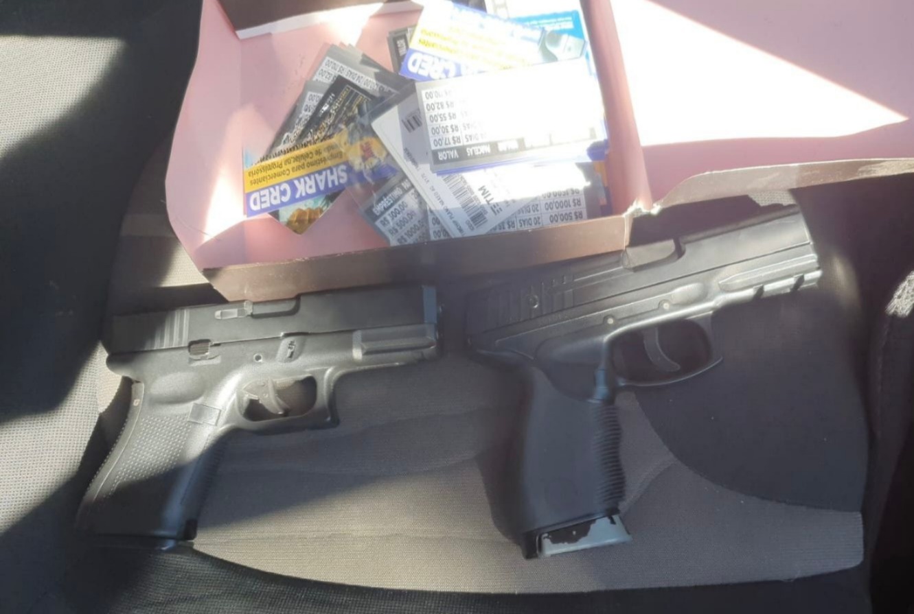 Simulacros de arma de fogo apreendidos na residência do suspeito, usados para intimidar vítimas durante os crimes. Foto: PCMS.