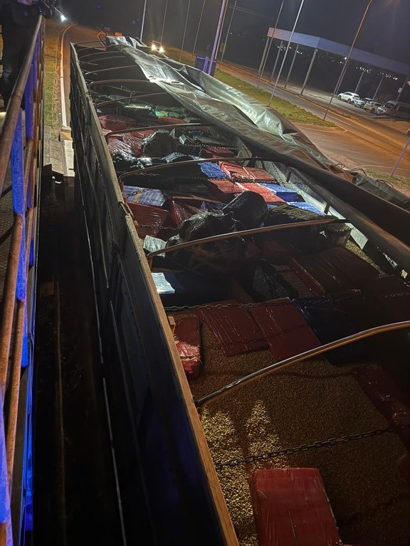 Na vistoria, os policiais localizaram diversos fardos de maconha misturados à carga de grãos. O condutor declarou que havia buscado o entorpecente no Paraguai e que o destino final seria a cidade de Maringá, no Paraná.