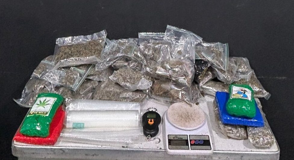 Após a entrada autorizada, foram localizados 31 tabletes de maconha escondidos no sofá do quarto, totalizando 4,87 quilos da droga. Também foram apreendidos 95 sacos plásticos tipo zip lock, dois rolos de embalagem a vácuo e duas balanças digitais de precisão, utilizados na preparação e venda do entorpecente.