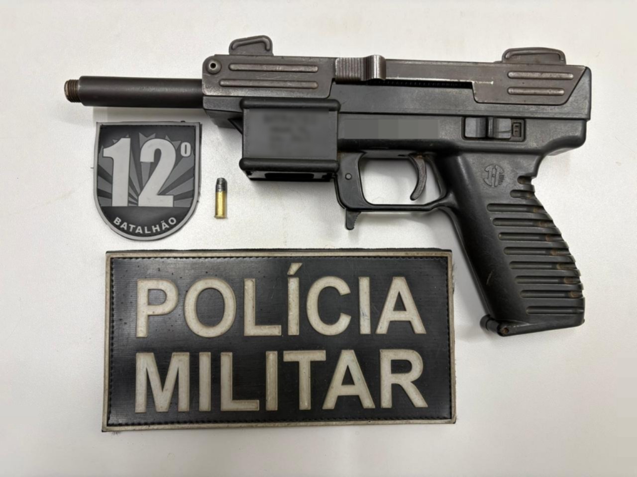 Ao chegar ao local, as equipes RP3 e RP2 realizaram a abordagem e localizaram, com o suspeito, uma pistola semiautomática calibre .22, de fabricação norte-americana, além de uma munição intacta, que estavam na cintura do abordado.