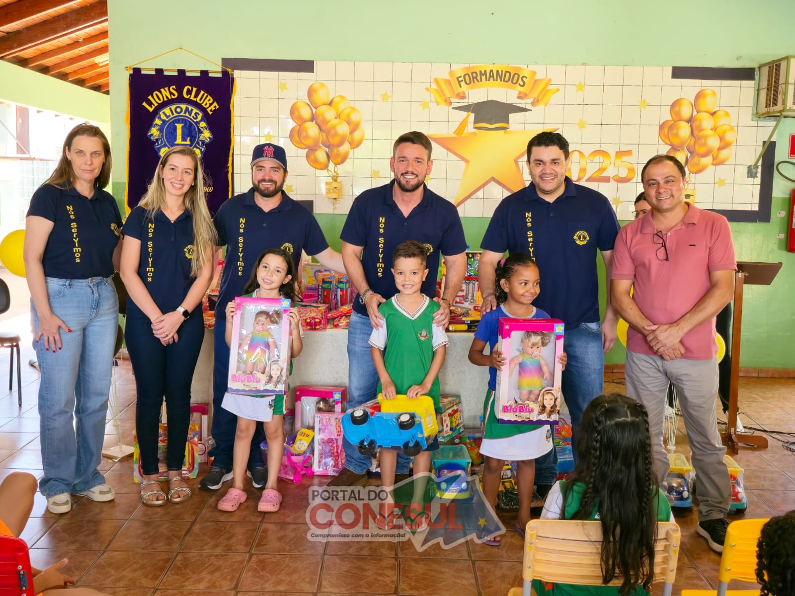 Para o presidente do Lions Clube, Juliano de Andrade Pizatto, iniciativas como esta reforçam o compromisso da instituição com a solidariedade e o bem-estar social. “É sempre uma grande satisfação proporcionar momentos de alegria às crianças da nossa comunidade. A entrega de brinquedos na Escola Milton Dias Porto é uma tradição que reflete nosso compromisso com a solidariedade e o bem-estar social. Ver o sorriso no rosto de cada criança nos motiva a continuar com essas ações, e queremos que cada aluno sinta o carinho e a atenção que dedicamos a esta iniciativa. Agradecemos à direção da escola, aos professores, pais e toda a equipe escolar pelo apoio e por tornar este evento possível. Esperamos que essa pequena ação transforme o dia das crianças e fortaleça os laços entre o Lions Clube e a comunidade de Naviraí.”