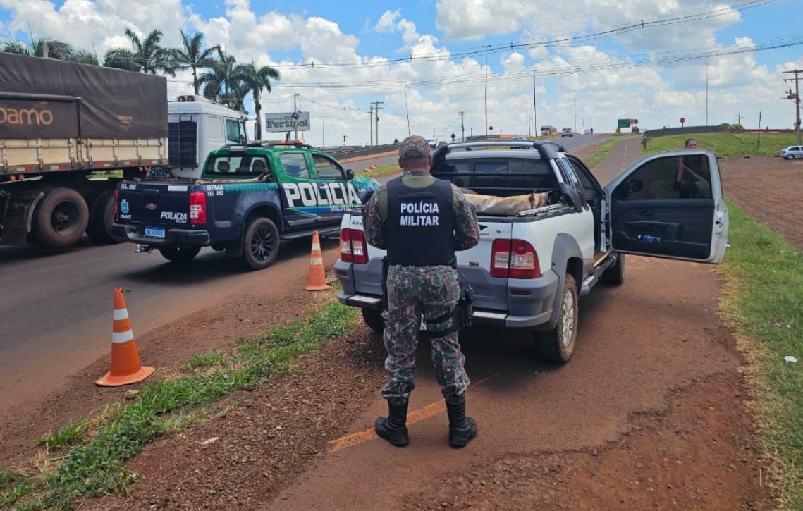 Durante patrulhamento terrestre na região do Porto Cambira, próximo à ponte do Rio Dourado, na MS-156, uma equipe avistou um Fiat Strada. Ao abordar o veículo nas proximidades do trevo do DOF, o condutor confessou transportar um exemplar de pintado (Pseudoplatystoma corruscans), pescado há dois dias no Rio Dourado, com 21 kg e 1,40 metro, durante o período proibido. Ele ainda revelou que havia deixado o peixe na casa de um conhecido e retornava para buscá-lo.