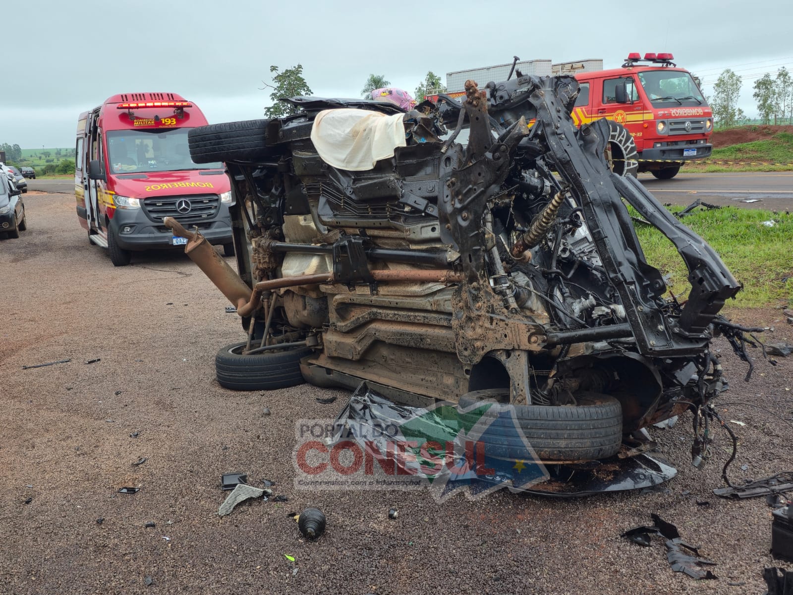 Um acidente de trânsito registrado na manhã deste sábado (13) na BR-487, em Itaquiraí, resultou na morte de uma mulher e uma criança. A colisão envolveu um Jeep Compass, um Volkswagen Polo e uma carreta, mobilizando equipes do Corpo de Bombeiros e serviços de emergência.