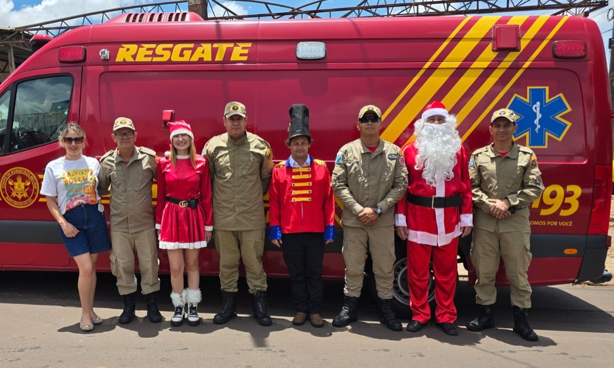 A recepção ao bom velhinho teve início no 10º Grupamento de Bombeiros Militar de Naviraí, onde a visita especial também levou alegria aos profissionais que diariamente arriscam a própria vida para salvar a da população. Após o encontro na corporação, o comboio natalino seguiu escoltado pelos bombeiros pelas principais vias da cidade.