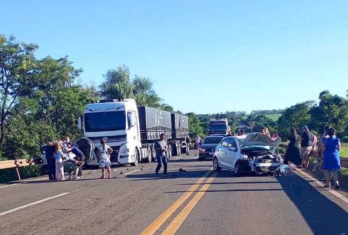 BR-163: cinco veículos se chocam em sequência, deixam uma vítima fatal e várias pessoas feridas