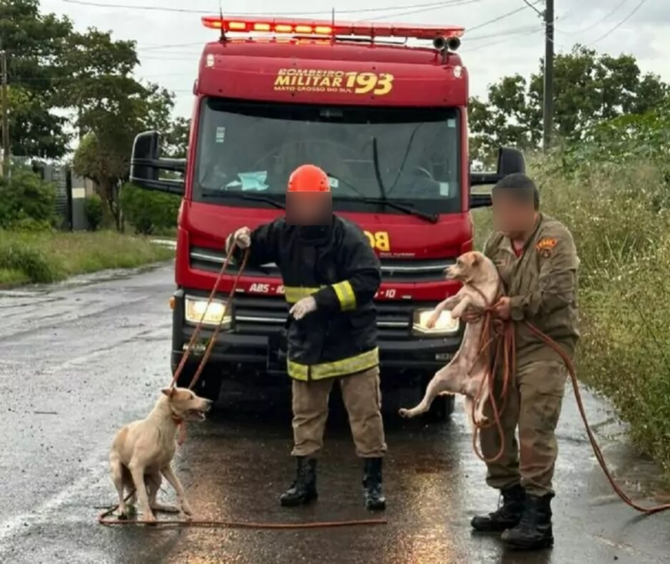 Bombeiros resgatam cães que caíram em poço de cinco metros em Três Lagoas