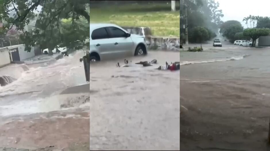 Temporal alaga ruas e deixa carros ilhados em Ponta Porã