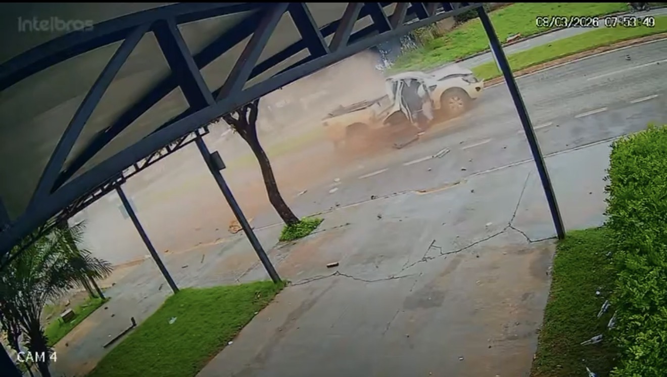 Impacto violento em Sorriso arranca porta de caminhonete e deixa mulher gravemente ferida