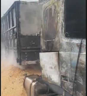 Carreta de suspeito em homicídio é incendiada horas após crime em Itaquiraí