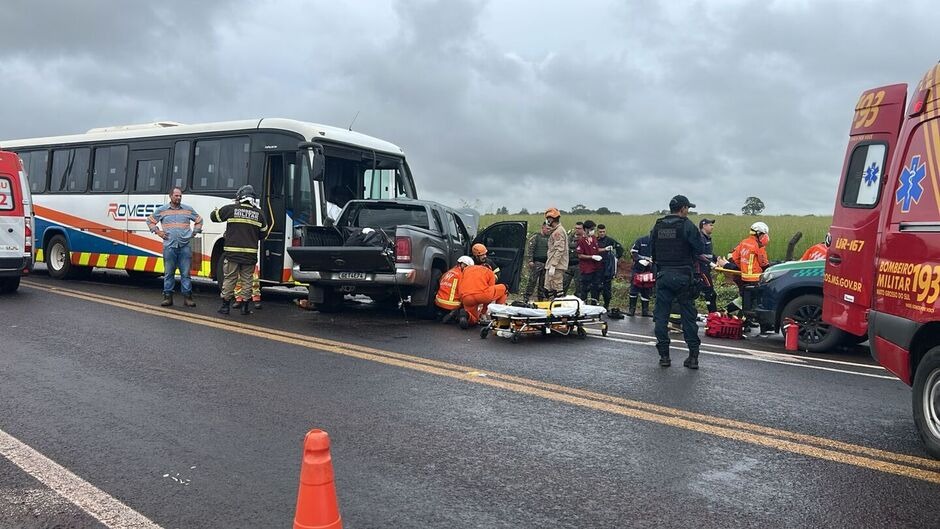 Acidente entre ônibus e caminhonete deixa um morto na MS-040