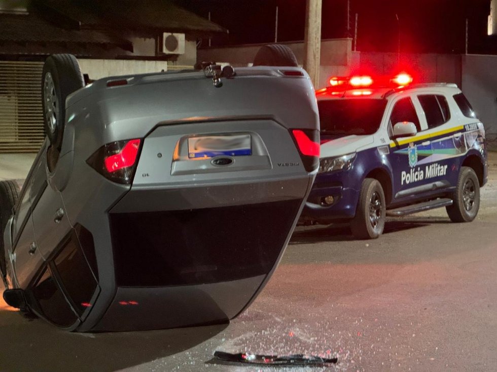 Colisão entre três veículos termina com carro capotado no Bairro Itapoã, em Ivinhema
