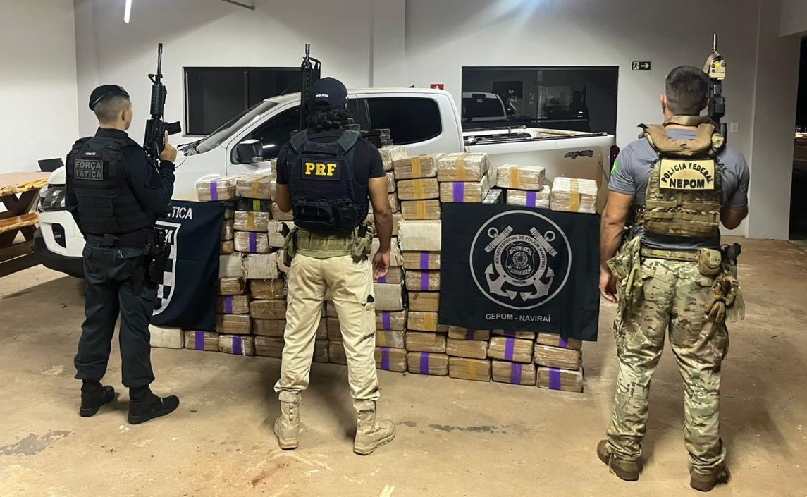 Forças integradas apreendem camionete S10 com mais de 1,2 mil quilos de maconha em Itaquiraí.